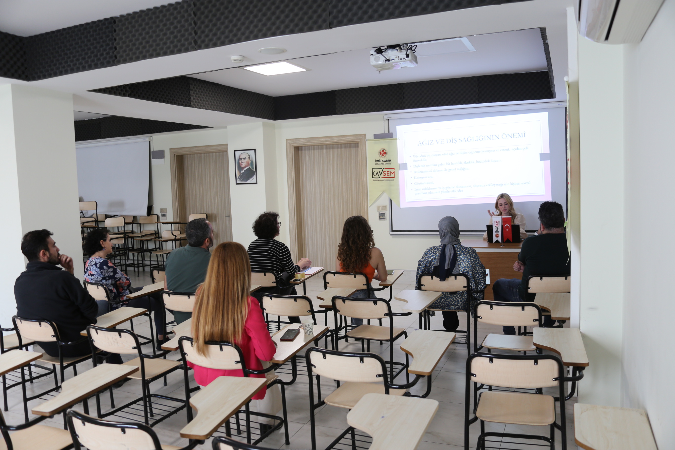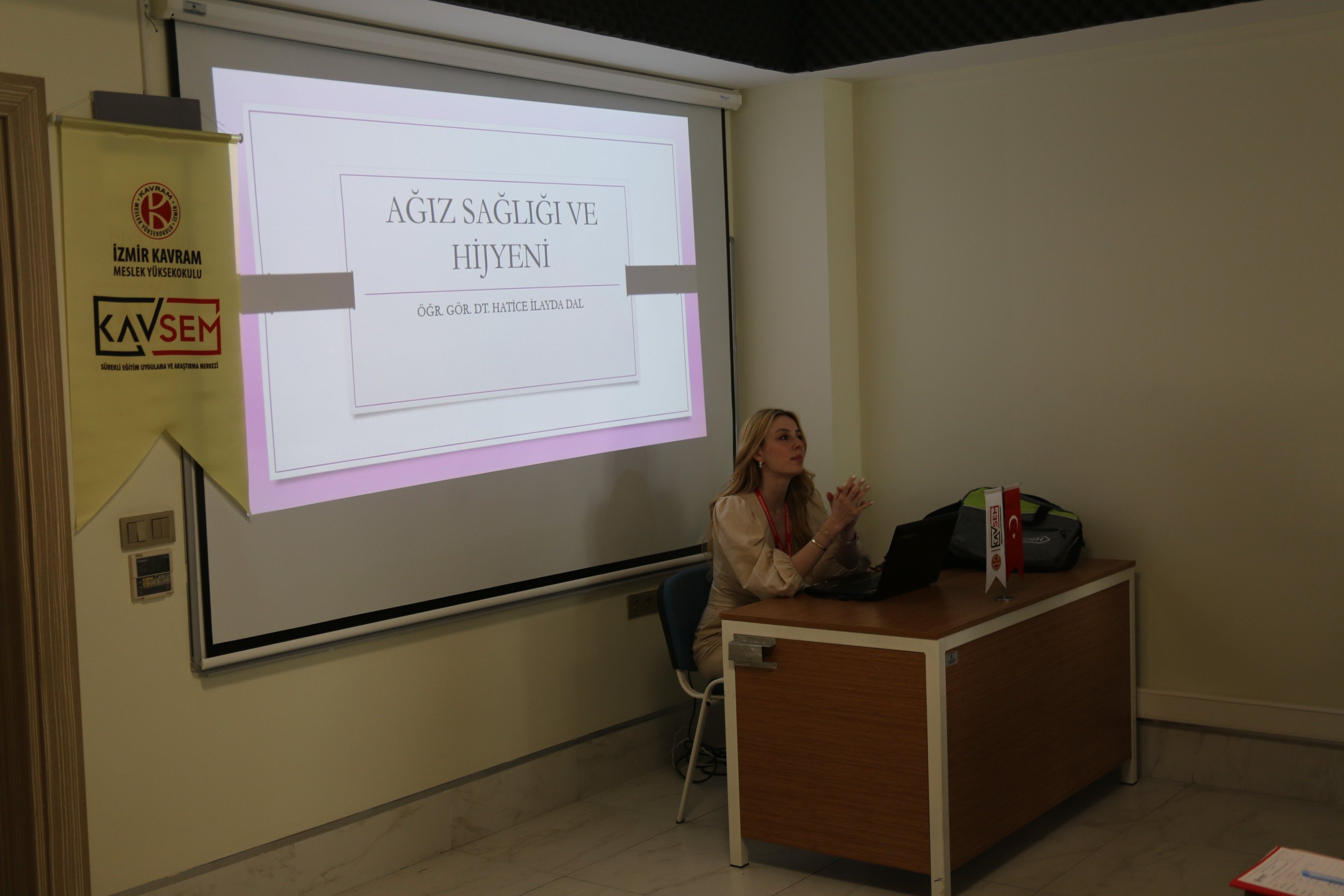 KAVSEM tarafından organize edilen ve İzmir Kavram Meslek Yüksekokulu'nda Nisan ayında gerçekleşen ağız sağlığı ve hijyeni eğitimi, katılımcılar tarafından yoğun ilgiyle karşılandı. Hatice İlayda Dal tarafından verilen bu eğitimde, ağız ve diş sağlığının korunması, hijyenin önemi ve doğru bakım yöntemleri üzerinde duruldu. Katılımcılar, bu değerli eğitimle ağız sağlığı konusundaki farkındalıklarını artırma imkânı buldular.