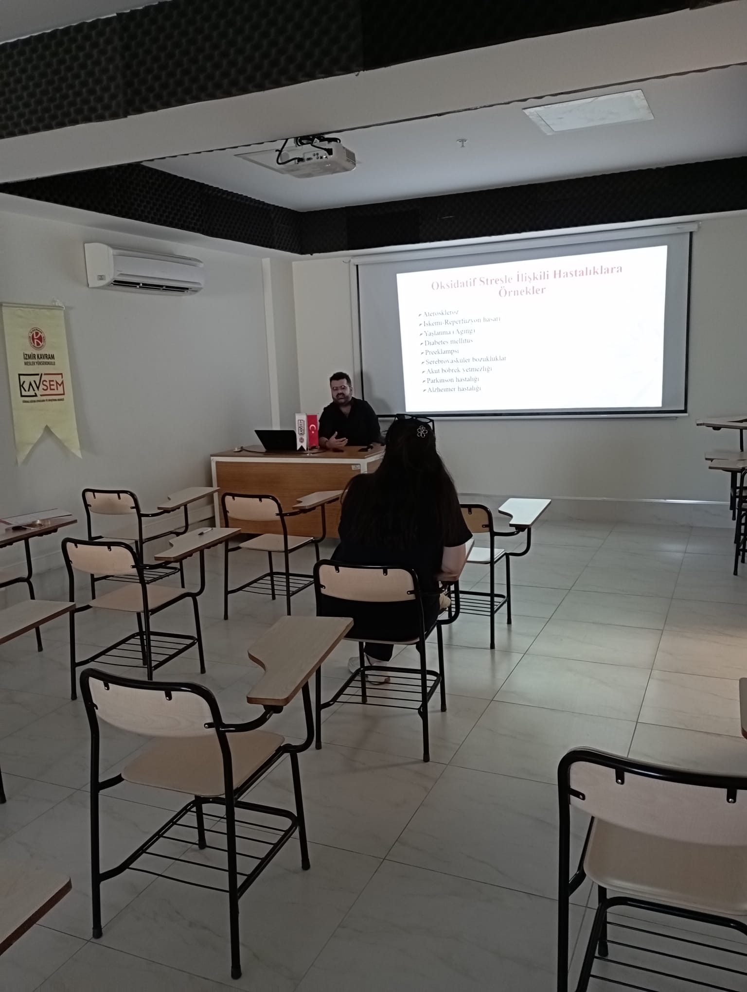 KAVSEM tarafından organize edilen "Antioksidanlar ve Vücuttaki Etki Mekanizması" eğitimi, İzmir Kavram Meslek Yüksekokulu çalışanlarına yönelik olarak gerçekleştirildi. Eğitim, Öğr. Gör. Dr. Berker Kocatürk tarafından verildi. Bu eğitimde, katılımcılara antioksidanların vücuttaki rolü, serbest radikallerle mücadeledeki önemi ve sağlık üzerindeki etkileri hakkında bilgi verildi. Eğitim, çalışanların sağlık ve beslenme konularında farkındalıklarını artırmayı ve daha sağlıklı bir yaşam tarzı benimsemelerini teşvik etmeyi amaçladı.